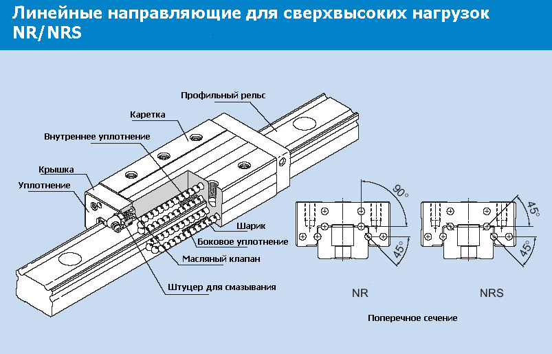 Конструкция: Используют цилиндрические ролики, которые контактируют с дорожками качения по линейной схеме.